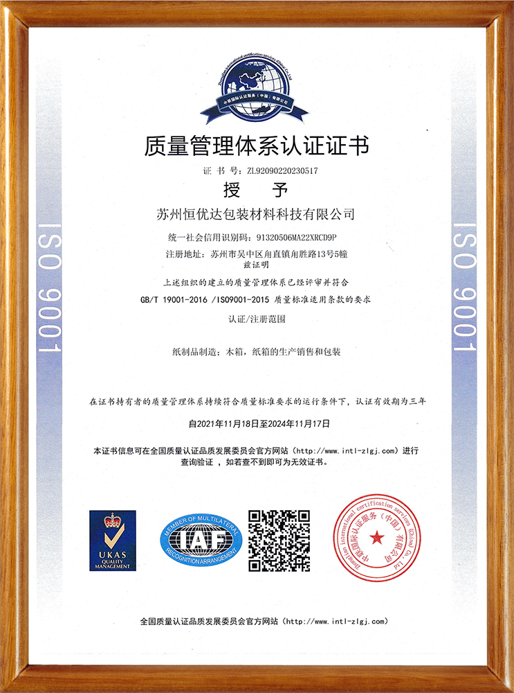 蘇州恒優達包裝材料科技有限公司位于蘇州吳中區甪直古鎮,靠近滬寧高速、滬寧鐵路,靠近昆山,上海,蘇州工業園區等,交通十分便捷。公司占地面積1500平方米,擁有員工18余人,其中專業技術人員10名。我公司是一家專業生產包材:瓦楞紙板、紙箱、紙托盤、木箱、木托盤、泡棉的企業。